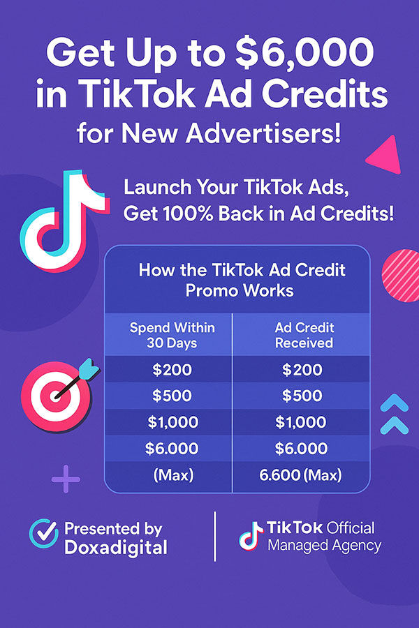 This December 2025, Doxadigital and TikTok are giving your brand a head start. New advertisers can receive up to $6,000 in ad credits fully matched to your ad spend during your first 30 days on TikTok.